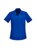 Styles feature longer hem lengths, hidden bust button (short sleeve and 3/4 sleeve styles), side splits and pockets.
